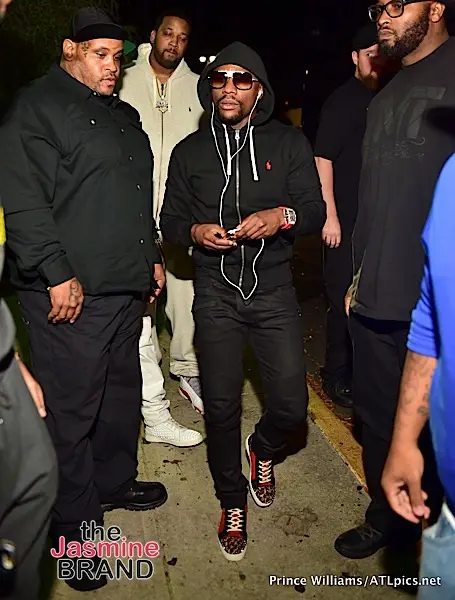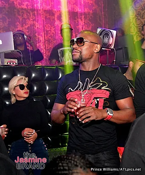 Over the weekend, Floyd Mayweather and his girlfriend Bad Medina – who was spotted wearing a MASSIVE engagement ring- were spotted partying at Atlanta’s Medusa Lounge. According to our source, T.I. was in attendance and since this was before the infamous video leaking of Mayweather dancing with Tiny (Harris), there was no beef. We also spotted Fabolous, Kevin Hart and Karlie Redd. Check out the photos below!