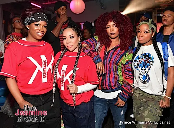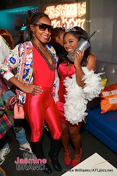 All of Reginae’s famous friends were in the building, rocking their favorite throwback attire. Toya channeled her inner Da Brat, while Kandi and Tameka ‘Tiny’ Harris paid homage to Kris Kross.