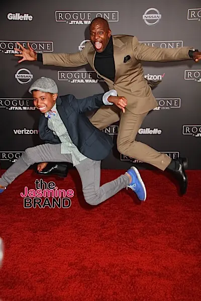 They’re twinning! Terry Crews and his son Isaiah do their legendary jump on the red carpet at the