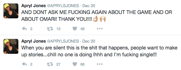 Apryl, who shares two children with Omarion, took to Twitter denying that she’s dating Game. She also denied reports that she was returning to Love & Hip Hop: Hollywood.
