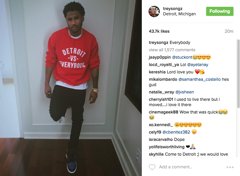 He remained at the Detroit Detention Center on Thursday morning and pleaded not guilty and was being held on $25,000 bail, which he posted Thursday afternoon. After his release, Trey posted a photo wearing a shirt that read Detroit vs Everybody.