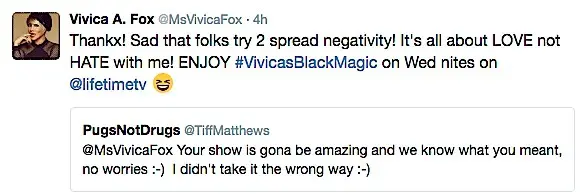 Thankx! Sad that folks try 2 spread negativity! It’s all about LOVE not HATE with me! ENJOY #VivicasBlackMagic on Wed nites on @lifetimetv