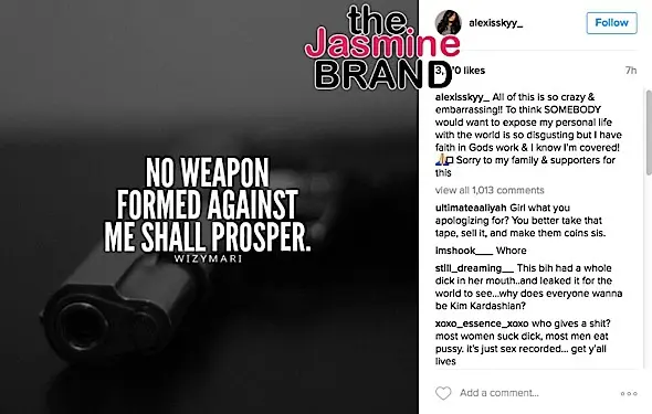 All of this is so crazy & embarrassing!! To think SOMEBODY would want to expose my personal life with the world is so disgusting but I have faith in Gods work & I know I’m covered! ?? Sorry to my family & supporters for this.