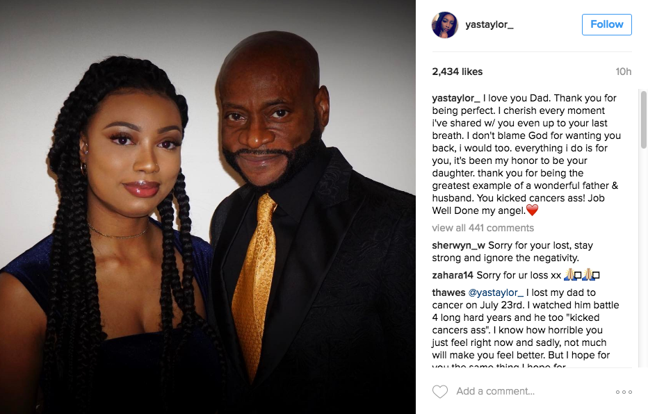 Bishop Eddie Long’s daughter, Taylor, has taken to so social media, posting a sweet message about her father. Sharing a photo of her posing with her father, she writes: