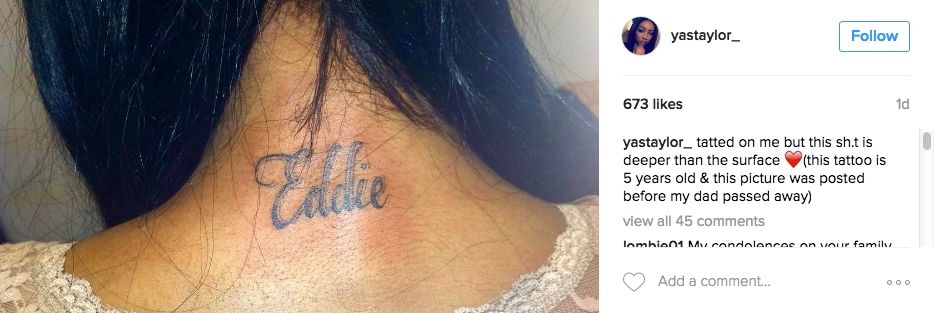 On another post, she shows off her ‘Eddie’ tattoo writing: