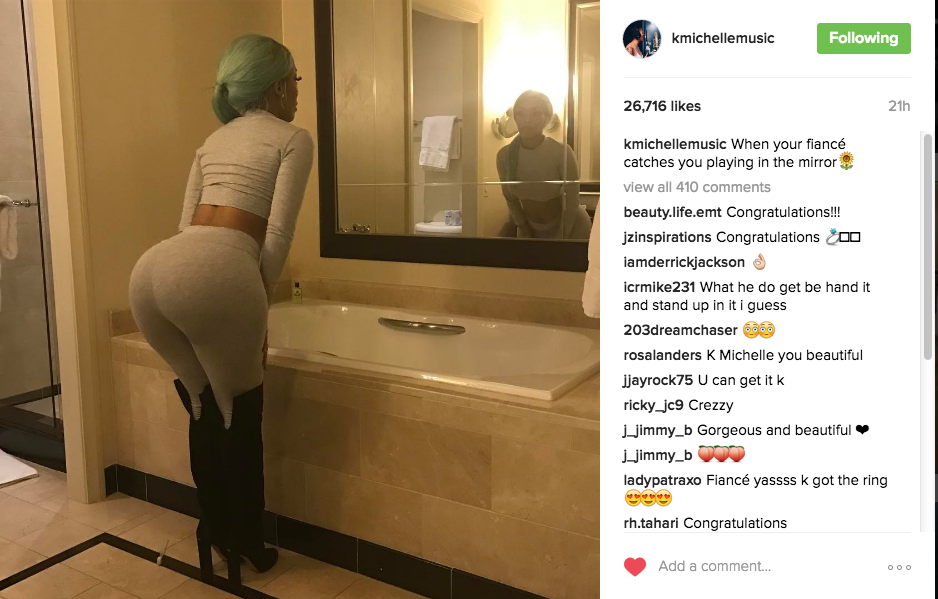 Is K.Michelle engaged? It appears so. Over the weekend, the singer and reality star hinted that her bae popped the question. Posing in front of the mirror, she wrote: