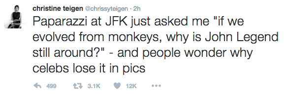 Chrissy Teigen Calls Out Racist Paparazzi: He asked if we evolved from monkeys!