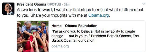 Obama Shares Final Tweets As President, Welcomes Trump to White House