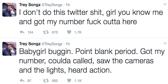 Babygirl buggin. Point blank period. Got my number, coulda called, saw the cameras and the lights, heard action. I don’t do this twitter sh*t, girl you know me and got my number f*ck outta here