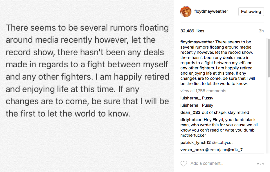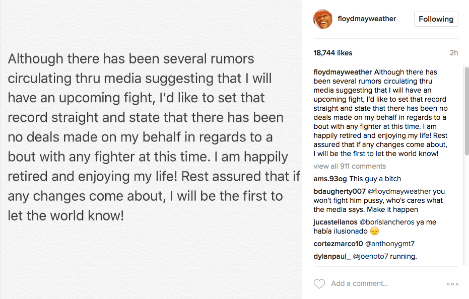 Floyd Mayweather Says Rumors of Him Coming Out of Retirement Are False