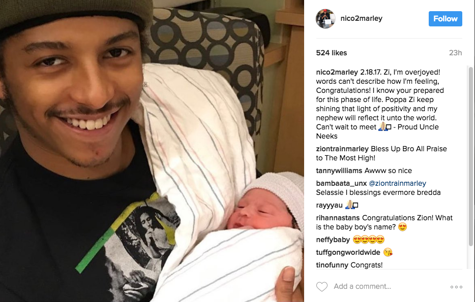 Lauryn Hill is a grandmother! The singer and Rohan Marley’s son, Zion, revealed on social media that he welcomed a son. Holding his newborn, he wrote:
