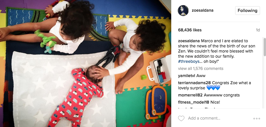 Congratulations to actress Zoe Saldana and her husband Marco Perego. Over the weekend, the pair announced the birth of their son, Zen. Sharing the news on social media, she wrote: