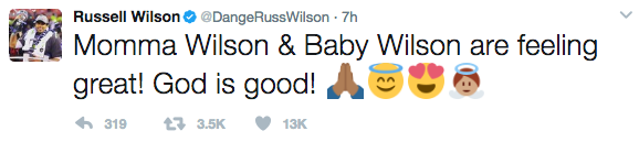 Russell Wilson has taken to social media, providing an update after reports revealed this his pregnant wife, Ciara, had been involved in a car accident. He tweeted: