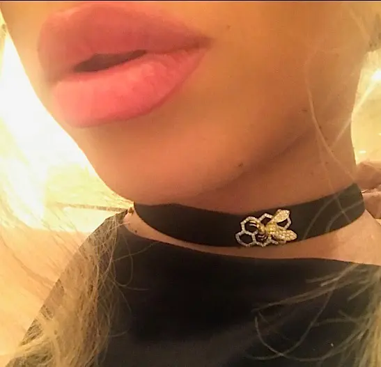 Bey rocks all black, wearing a black form fitting dress, black boots and a black designer bag. She pairs the look with a black choker and silver earrings. Check out the photos!