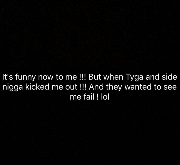 It’s funny now to me!!! But when Tyga and side n***a kicked me out!!! And they wanted to see me fail! lol And 2 grind from the dirt!!!!!! No child support! N*gga is like hoes! So imma treat u like that! Not paying Jenny ! Wow. Stop running to ur money! Telling my business about King! I bet any money ! I got more money then ur account Tyga, Michael !!! So go tell Kylie and Rob ! About our son Account! Cause that’s the only reason I’m contacting your f** a**! But u wanna make it like I want u lol! Tyga ur a b*tch! And u can go get ur mom, or ur b*tch! Lol!!! Or ur n*gga u f***in or Terrell or heather! On wait **** venture blvd 215.