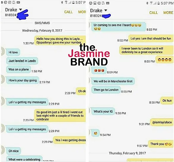 In another message she shares a screen shot of being contacted by someone else on Drake’s behalf.
