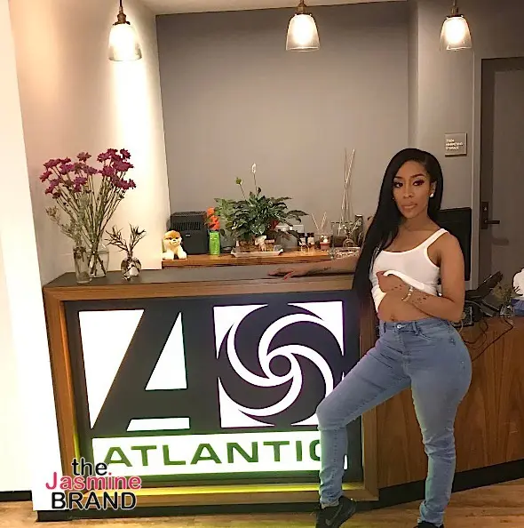 New music has K.Michelle so excited that she’s running around topless! On Thursday (April 20th), the soulful singer was in full celebratory mode. We spotted her running around Atlantic’s office, shirt optional, excited about her new single. She posted the clip with the caption: