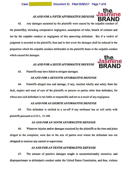 The NBA star blames the alleged victims for their injuries due to their own negligence. He says if at the end of the case a verdict of judgement is awarded to the plaintiffs, then the amount of damages should be reduced by the percentage the plaintiffs caused the situation.