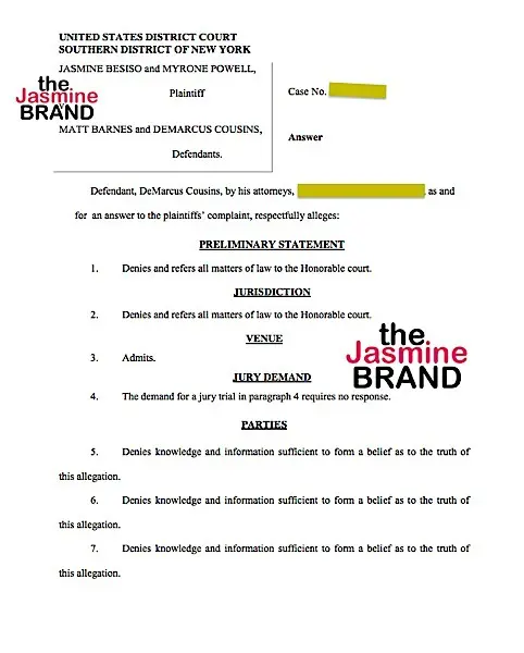 theJasmineBRAND.com exclusively reports, NBA star Demarcus Cousins is firing back at the lawsuit accusing him of assault inside a New York nightclub, arguing he only got physical to protect his friend Matt Barnes from irreparable harm.