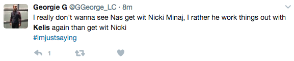 While the pic seemed innocent to us, social media exploded. See a few classic reactions below that involve Nas’ ex-wife Kelis, Minaj’s ex boyfriend Meek Mill and ghost writing jabs.