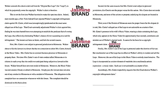 Walker claims he has notified Beyonce of the infringement and she hasn’t ceased the infringing use of his work. He sued demanding an injunction against Beyonce from using the Roc-A-Fella logo permanently, a court order forcing Beyonce to deliver for impoundment all copies of the logo in her possession, along with unspecified damages and attorney fees.