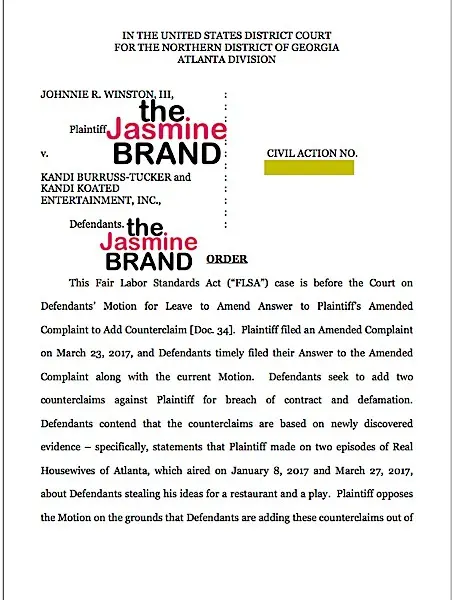 Here’s the latest: On May 16th, a judge in the case came back with his decision and sided with Kandi, allowing her to file a counter-lawsuit against her former employee Johnnie Winston III. The order explains Kandi is seeking to sue over,