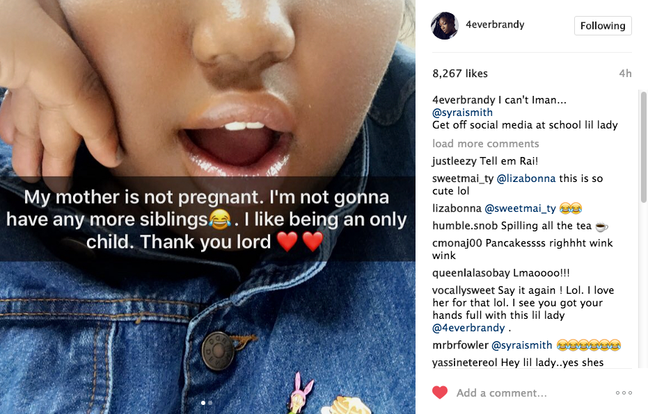 Update #2. Brandy’s daughter, Syrai responded to the news on social media, shutting down rumors that she’s going to be a big sister.