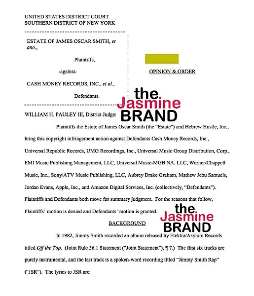 theJasmineBRAND.com exclusively reports, Drake scored a huge victory when a federal judge sided with him this week in court, by dismissing a 3-year long battle with a famous jazz musician’s estate ordering that the rapper doesn’t owe $300k for a sample.