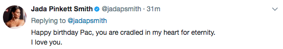 Jada Pinkett-Smith is publicly criticizing the new Tupac film, ‘All Eyez On Me’. Jada, who had a relationship with the late rapper, alleges that the film didn’t accurately portray their relationship. See her tweets below.