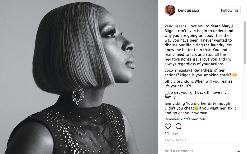 The pair are currently in a nasty divorce battle. Earlier this month, a judge ordered her to pay Isaacs $30,000 a month as a form of temporary spousal support, as well as a hefty $235,000 payment for retroactive spousal support and legal fees. Originally, Isaacs had requested $129,319 per month. Blige has yet to comment on Isaacs latest comments on social media.