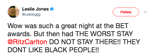 Wow was such a great night at the BET awards. But then had THE WORST STAY @RitzCarlton DO NOT STAY THERE!! THEY DONT LIKE BLACK PEOPLE!!
