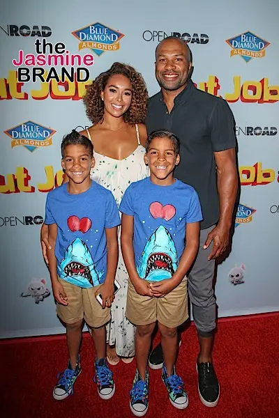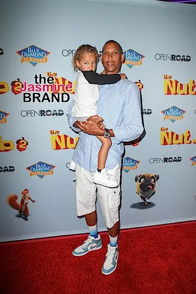 Former NBA coach Derek Fisher is spotted at ‘The Nut Job 2: Nutty by Nature’ premiere in LA, along with his girlfriend Gloria Govan and her twin sons.
