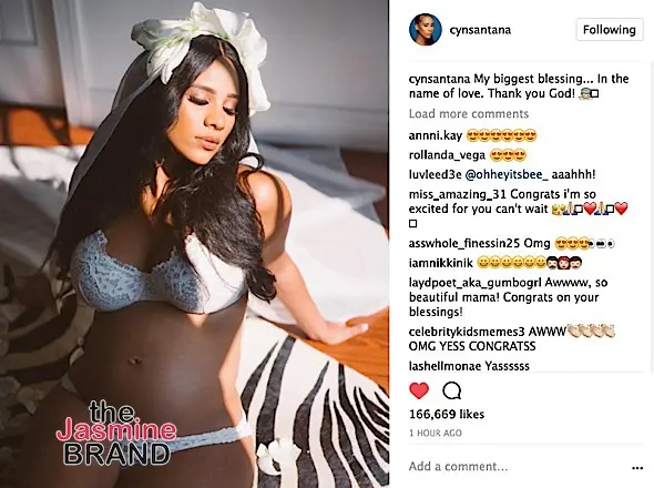 Congratulations to Joe Budden and Cyn Santana. The rapper and former Love & Hip Hop NY reality star are expecting their first child together. Cyn shared a photo of what appears to be a maternity shoot, showing off her growing baby bump, writing: