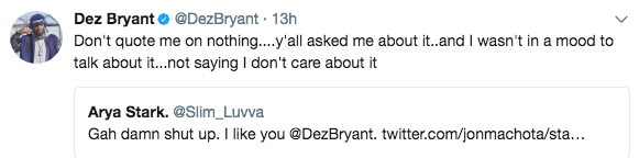 NFL’er Dez Bryant is making headlines for his stance on the national anthem protests. On Tuesday (August 16th), the Dallas Cowboys wide receiver defended his initial stance on national anthem protests Tuesday by telling Twitter critics he has a “family to feed” and “not saying I don’t care about it.”