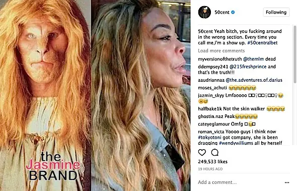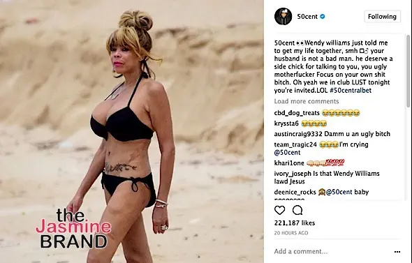 50 responded to Wendy’s comments, taking shots at both her physical appearance and the controversy that recently surrounded her and husband, Kevin Hunter. Check it out below.