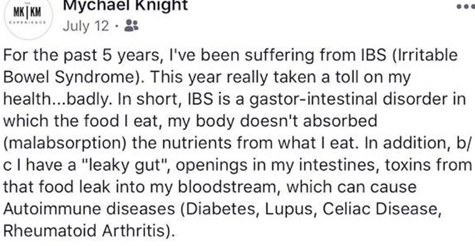 Update: Knight had reportedly been receiving treatment for intestinal issues, as he is said to have suffered from IBS (irritable bowel syndrome). Over the summer, he opened up about his condition.