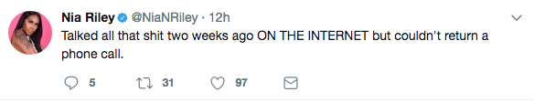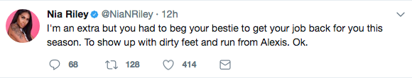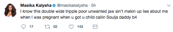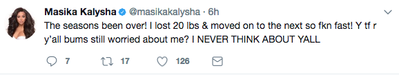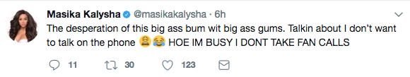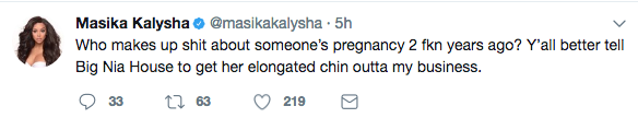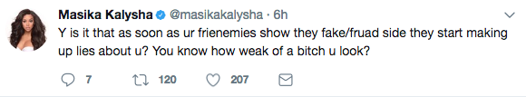 The claws are officially out between reality stars Masika Kalysha and Nia Riley. Both star on Love & Hip Hop: Hollywood, but apparently this season the pair ended their friendship. Their dislike for one another was displayed recently on social media. Check out Masika’s tweets below.
