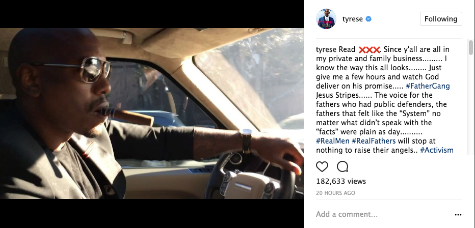 Prior to checking himself into the hospital, Tyrese posted several messages on social media after his court appearance. In one post, he smoked a cigar in his car, captioning the photo: