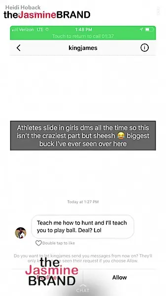 It appears that LeBron asked Heidi to teach him on how to hunt. See another alleged DM from LeBron below.