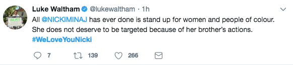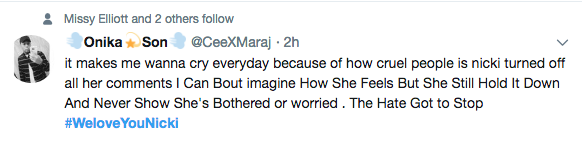 After news hit Thursday (November 9th) afternoon that her older brother Jelani Maraj was convicted of raping his 11-year-old stepdaughter, her fans immediately hopped on social media to show their support for the rapper. A #WeLoveYouNicki hashtag began trending on social media, with fans expressing how they still have her back, despite the controversy that faces her brother. See a few tweets below.