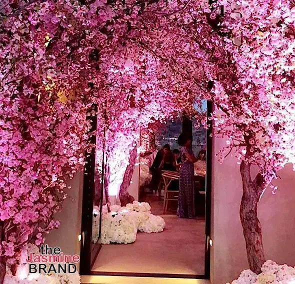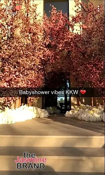 Held in Los Angeles, the Keeping Up With the Kardashian’s reality star hosted a ‘Tea for 3’ themed shower which included cherry blossom flower decor.