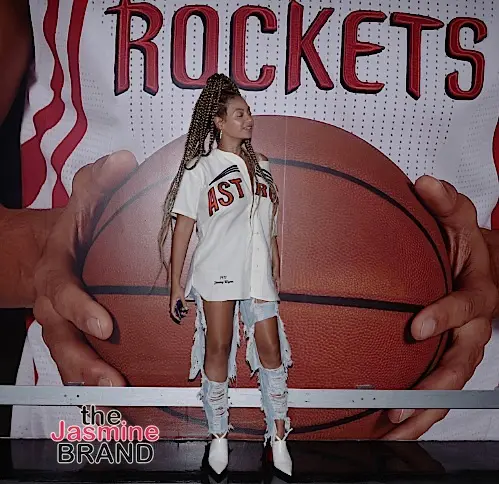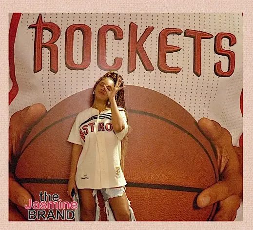 In another photo, she rocked a Mitchell & Ness Astros jersey, distressed jeans and leather mules.