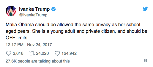 The photos went viral and resulted in a response of President Trump’s older daughter, Ivanka Trump, and Chelsea Clinton, the daughter of former president Bill Clinton and former Democratic presidential nominee Hillary Clinton. Both women tweeted that Malia should receive privacy.