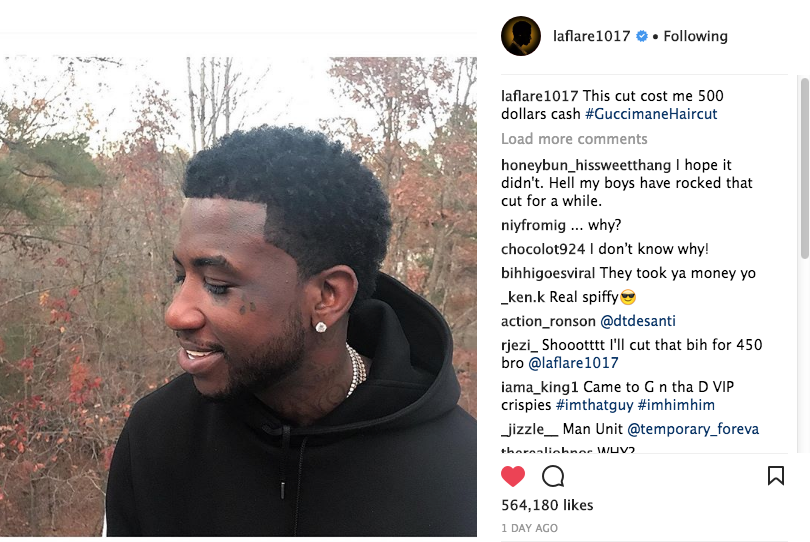 We’re not sure if he was joking, but he shared a few social media posts, revealing that he pays a pretty penny for a fresh cut that he and his barber invented, called the #GucciManeHaircut.