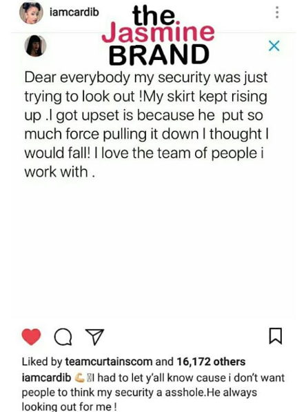 Cardi B Addresses Security Guard’s Behavior