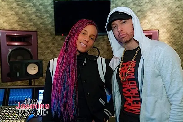 Alicia Keys hits the studio with Eminem. The singer has a track on Em’s upcoming album, Revival.