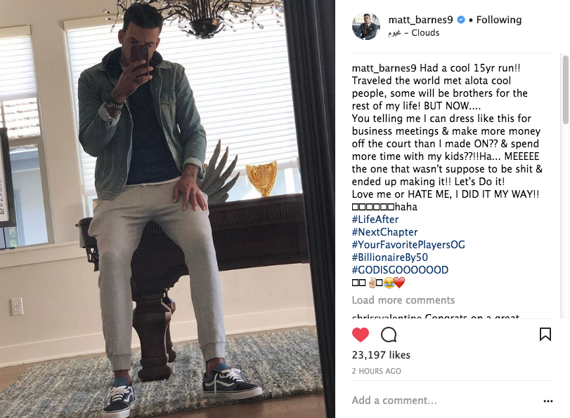 Matt Barnes is officially throwing up the deuces to the NBA! Today, the 37-year-old announced the news on social media writing:
