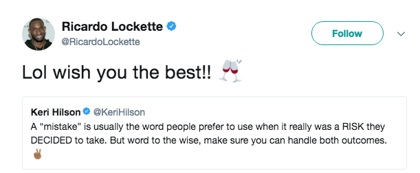 Keri Hilson is officially single. According to reports and a bit of speculation, it appears that the singer and her Seattle Seahawks boyfriend Ricardo Lockette, have ended their relationship. A recent social media post from Lockette sorta hints that things have ended between the pair.