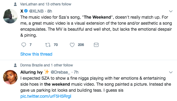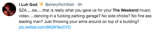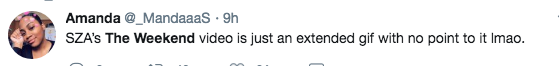 A few folk on Twitter weren’t too pleased with SZA’s video. See a few reactions below.