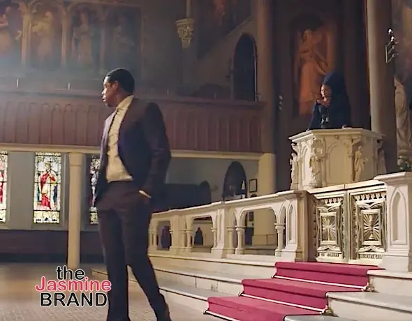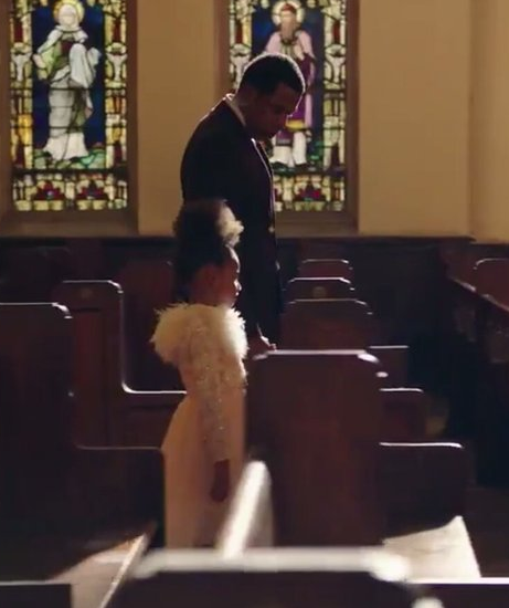 In the clip, Jay-Z enters a church and spits the hook –Nobody wins when the family feuds – while confessing his sins.